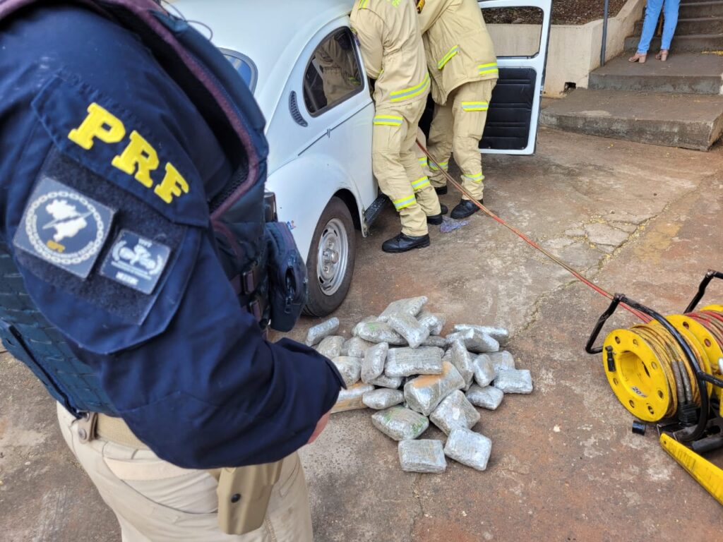Agentes da PRF abordaram um VW Fusca, conduzido por um homem de 20 anos, que demonstrou muito nervosismo durante a fiscalização, o que levantou a suspeita da equipe.
