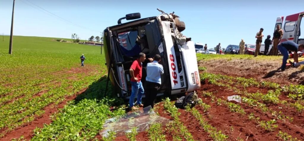 Já o ônibus saiu da pista e tombou às margens da rodovia. Devido ao acidente, o trânsito apresentou lentidão na região.