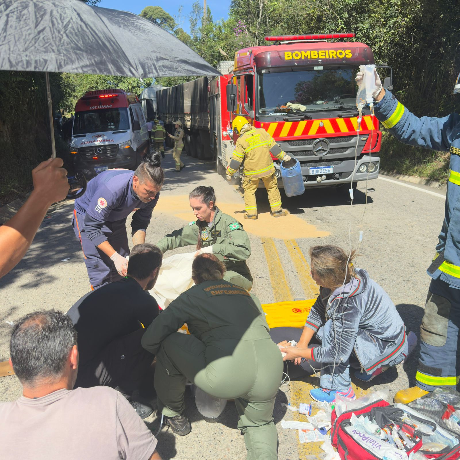 Já o ônibus saiu da pista e tombou às margens da rodovia. Devido ao acidente, o trânsito apresentou lentidão na região.
