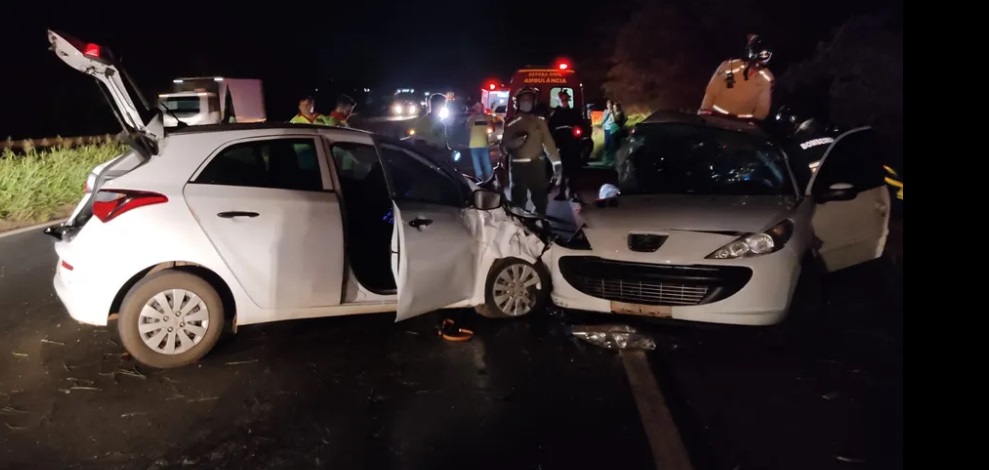 Um acidente entre dois carros deixou uma idosa de 72 anos morta, em Marialva, no Norte do Paraná, na noite deste sábado (6).