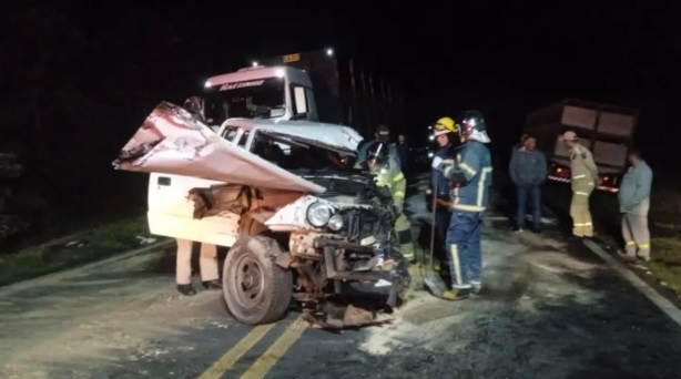 Ambos os feridos, ocupantes de picape, uma Mitsubishu L200, foram socorridos conscientes. A picape ficou com a frente e a lateral esquerda destruídas após atingir a lateral traseira de um caminhão que transitava no sentido oposto.