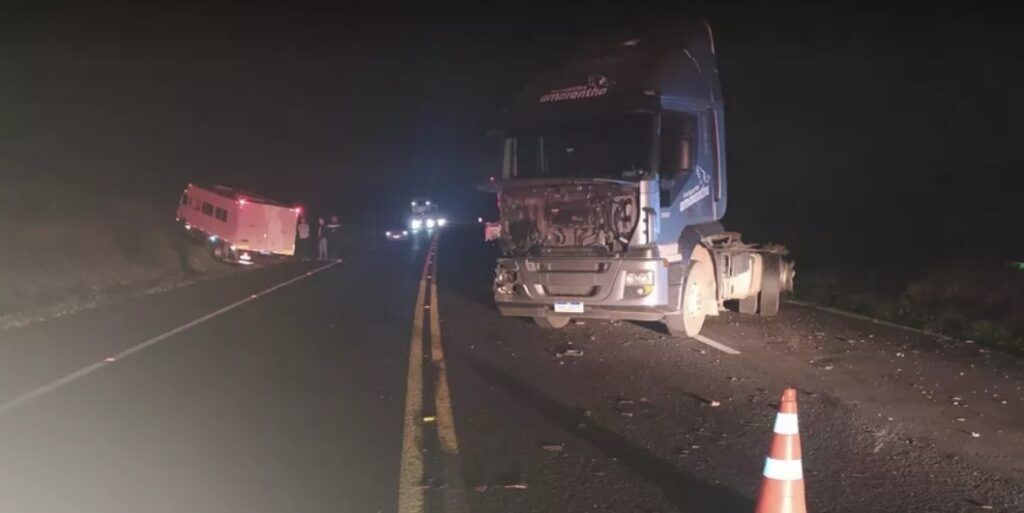 Segundo a PRF, dois caminhões se envolveram em um primeiro acidente, quando ambos seguiam no mesmo sentido da rodovia. Um dos veículos foi mudar de pista no momento de uma ultrapassagem e houve a batida. O impacto levou um dos caminhões a sair da rodovia.