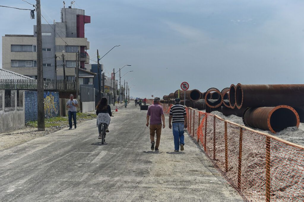 Entre o par de estruturas, o terreno é aprofundado em cerca de três metros, aumentando a capacidade de escoamento dos canais. Elas complementam as obras de macrodrenagem em andamento no Canal da Avenida Paraná, dentro da cidade e afastado da orla marítima.