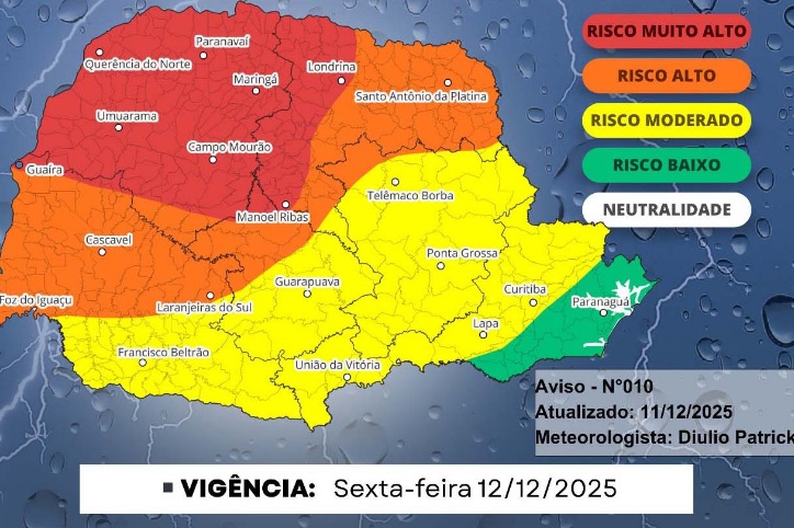 O ciclone extratropical que causou impactos no tempo no Paraná nesta semana já foi embora, mas outro fenômeno meteorológico se formou e, segundo o Sistema de Tecnologia e Monitoramento Ambiental do Paraná (Simepar), tem o potencial de formar supercélulas (tempestades severas) no Estado entre esta sexta-feira (12) e sábado (13).