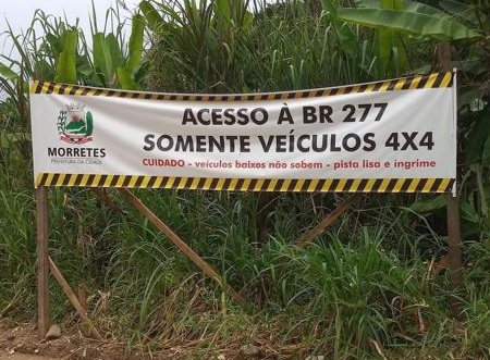 A Prefeitura de Morretes, no Litoral do Paraná, confirmou ao Portal Nosso Dia que o problema está acontecendo e colocou uma faixa em um dos pontos em que é visível para todos os acessos da Estrada da Anhaia. A administração municipal ainda promete colocar em outros pontos. De acordo com o superintendente de Assuntos Governamentais do município, Guilherme Wicthoffet Machado, mesmo com o aviso os motoristas preferem pagar para ver e, literalmente, se o carro não for 4×4, pagam o conserto depois.