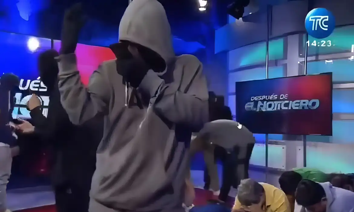 Mas pouca coisa mudou. O Equador viveu uma nova madrugada de terror, com policiais sequestrados em várias cidades. Ontem, a situação se agravou. Homens armados e encapuzados invadiram o estúdio da emissora TC Televisión em Guayaquil. O canal estava ao vivo e registrou o momento em que um grupo de bandidos avançou e ameaçou jornalistas e cinegrafistas.