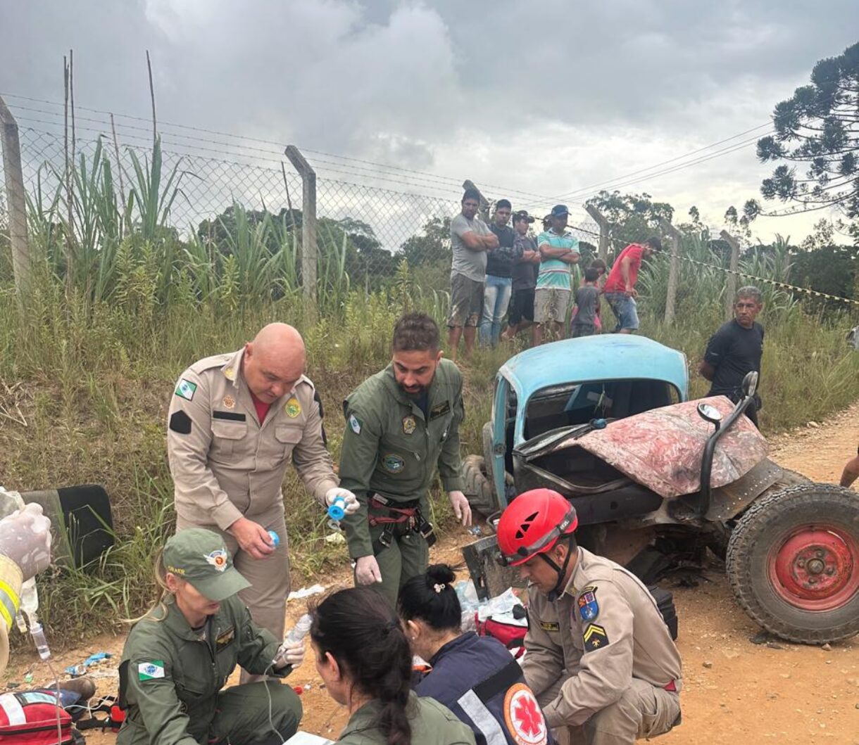 O Corpo de Bombeiros retirou a árvore de cima do veículo depois de um trabalho de cerca de quatro horas e a rodovia foi liberada.