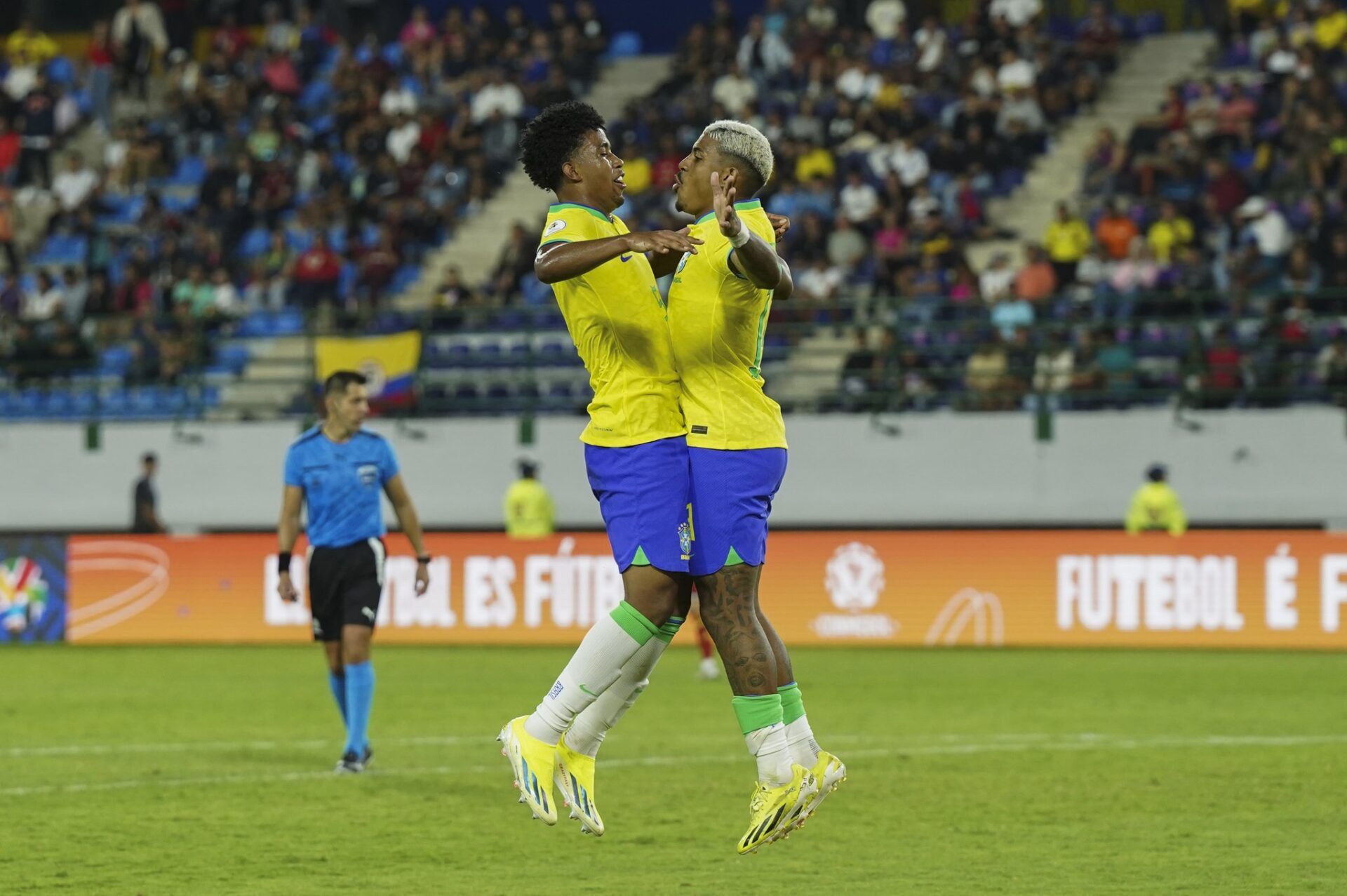 Quando o momento era delicado, com a Colômbia crescendo e ficando empolgada, apareceu o diferencial brasileira. Uma batida forte de John Kennedy obrigou o goleiro a dar rebote. Endrick aproveitou a sobra para mandar às redes e garantir a festa de seu pai nas arquibancadas. O atacante dançou e exibiu uma foto com a namorada na comemoração.