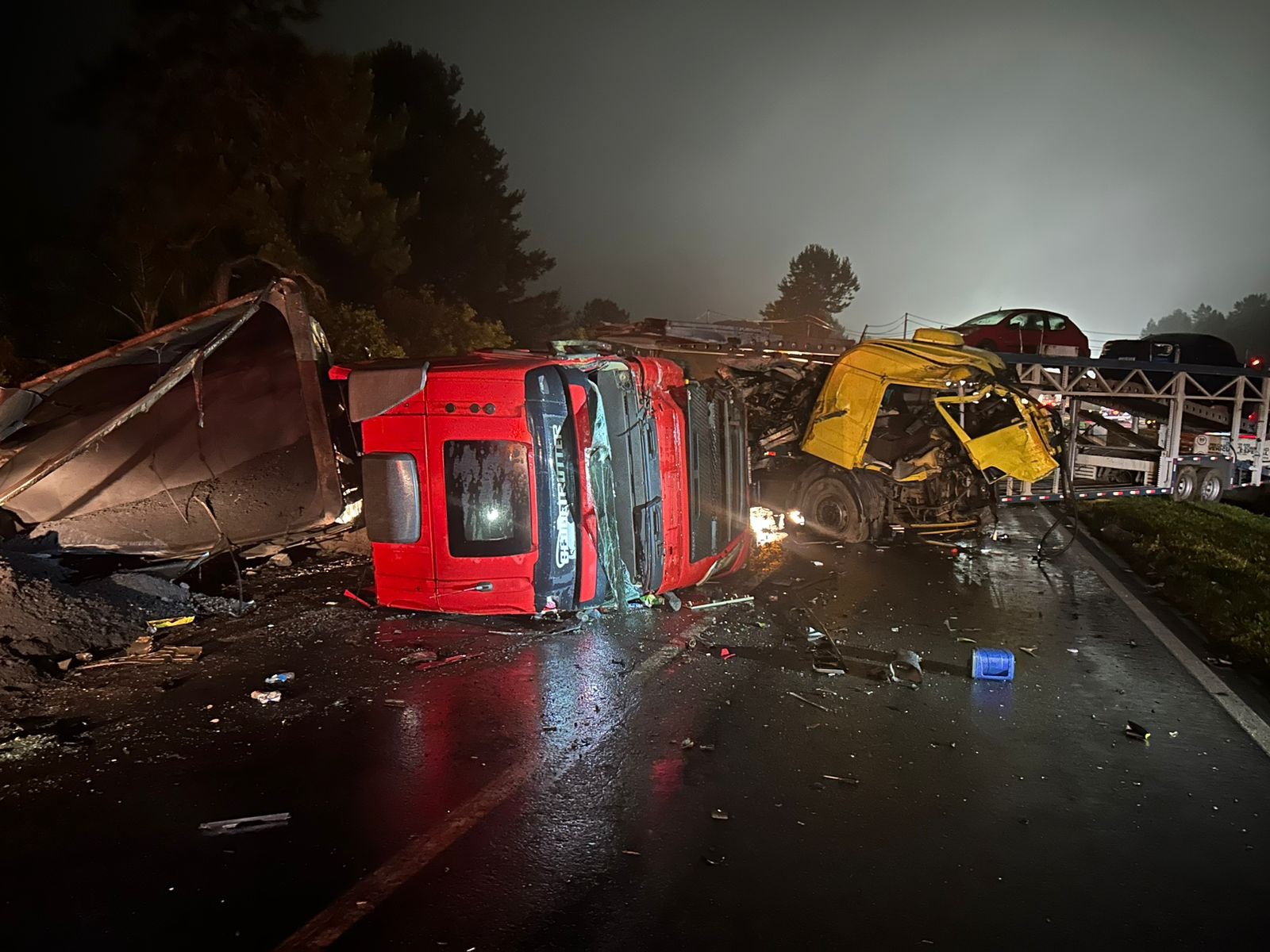Apesar da gravidade do impacto, o acidente não deixou feridos. No entanto, o sentido São Paulo da rodovia permanece bloqueado, gerando congestionamento na região.