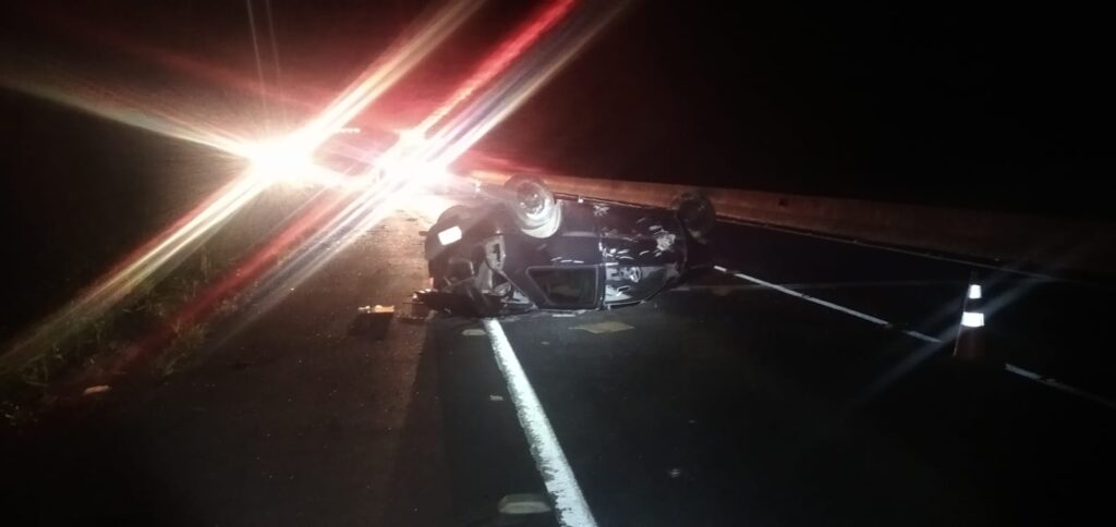 Um carro capotou e seis pessoas ficaram feridas na noite desta quinta-feira (16), na BR-376, em Tibagi, nos Campos Gerais do Paraná.