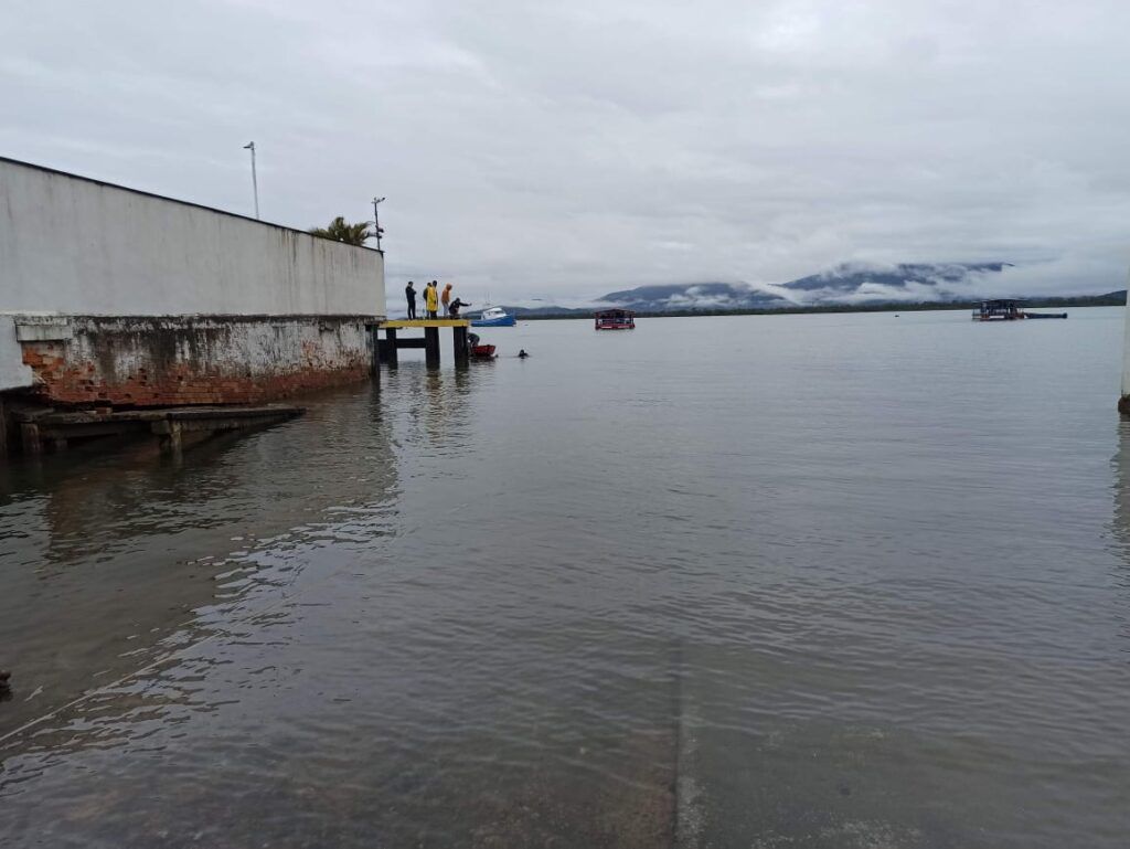 Um carro com um corpo dentro foi encontrado submerso na baía e Guaratuba, no Litoral do Paraná, na manhã deste domingo (7), de acordo com o Corpo de Bombeiros.