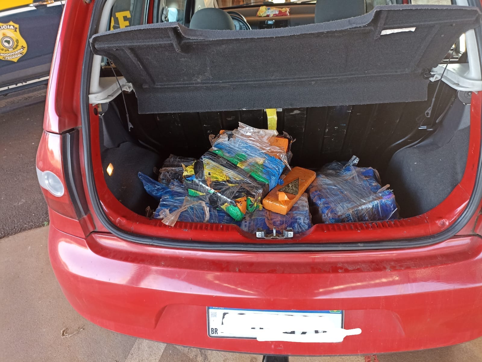 “O veículo era ocupado por um casal que afirmou que o motivo da viagem era um passeio a Guaíra-PR e estavam voltando a Curitiba-PR. Ao abrir o porta-malas do veículo, foi verificado vários tabletes de substância análoga a maconha. Perguntados sobre a droga os presos informaram que pegaram em uma casa em Guaíra-PR e que levariam parte para Ubiratã-PR, parte para Quatá-SP e a outra parte para Tupã-SP”, informou a PRF.
