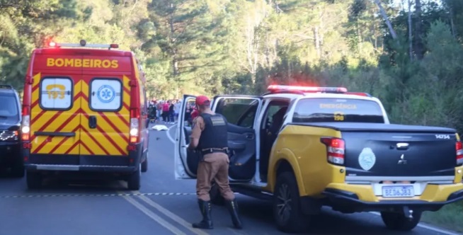 Um homem, de 19 anos, e sua namorada, de 17, estavam na moto e morreram no local. A batida aconteceu no km 22 da rodovia, entre Guaragi e Guaraúna, próximo de Ponta Grossa.