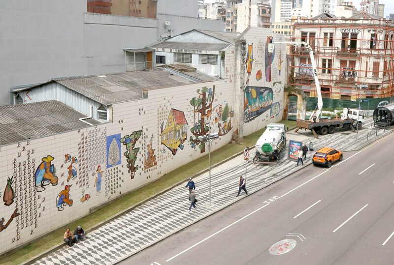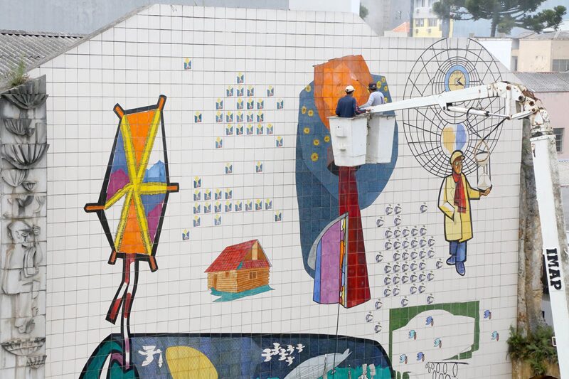 O trabalho já começou na sexta-feira (7/11), quando as equipes da Secretaria Municipal do Meio Ambiente fizeram a limpeza dos azulejos do painel do artista curitibano Poty Lazzarotto, que fica na frente do sobrado histórico de três andares com frente para a Travessa Nestor de Castro. Os painéis do Poty que ficam do outro lado da via também foram lavados pelas equipes.