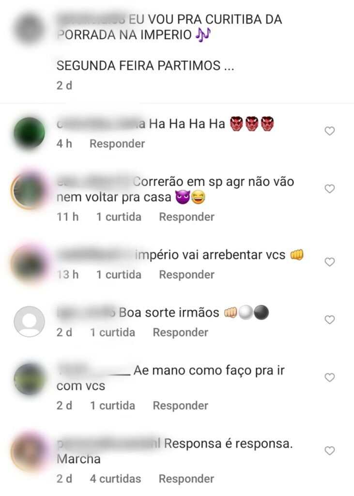 Desta forma, a resposta para as hostilidades têm acontecido mais como resposta às publicações de santistas. Os torcedores coxas-brancas citam mensagens de “podem vir” e “estaremos esperando”, reforçando a ameaça de conflito.