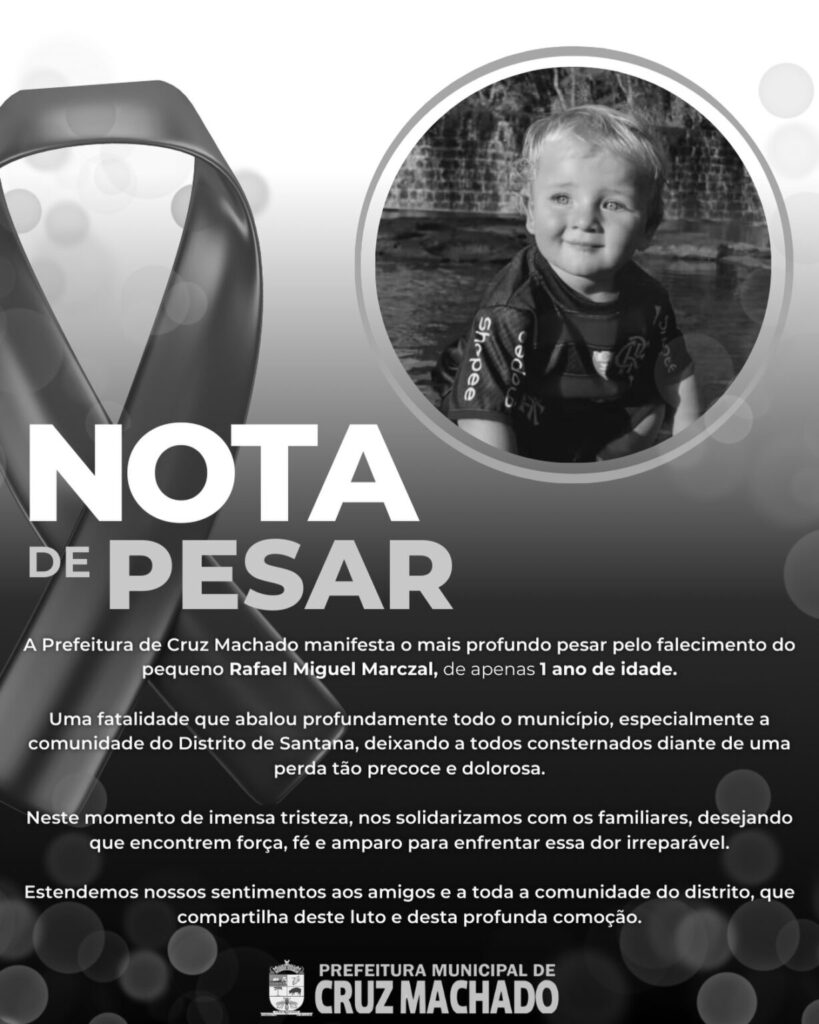 A Prefeitura de Cruz Machado manifestou profundo pesar pela morte da criança e prestou solidariedade aos familiares e amigos neste momento de dor. Em nota oficial, o município lamentou a fatalidade e se colocou à disposição para prestar apoio à família.