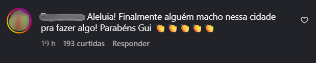 “Aleluia! Finalmente alguém macho nessa cidade pra fazer algo! Parabéns Gui”