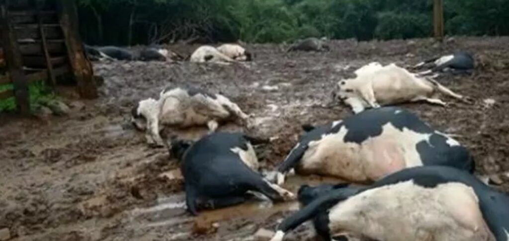Conforme Sérgio, os animais dormiam em um mesmo cercado quando aconteceu o acidente. Além das vacas, peixes de um açude próximo também morreram.