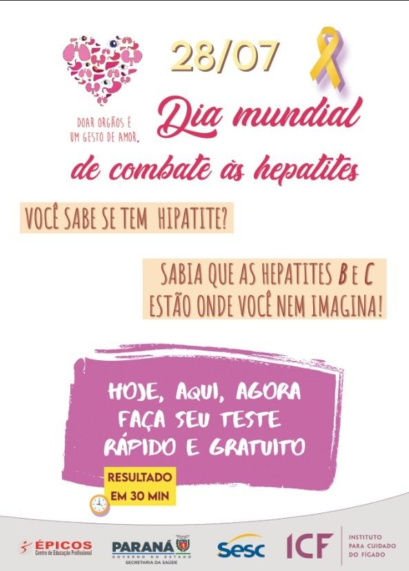 Em um ano em que muito tem se falado de prevenção e diagnósticos, vale lembrar que a Organização Mundial de Saúde adotou o dia 28 de julho como o Dia Mundial de Combate às Hepatites. Para conscientizar a população, há anos, nesta data, acontece uma ação especial do ICF – Instituto para Cuidado do Fígado em parceria com a Secretaria de Saúde do Paraná, Sesc e ÉPICOS – Centro de Educação Profissional. Este ano, em Curitiba (PR), a ação acontece no Sesc da Esquina, na quinta-feira, dia 28 de julho, das 10h às 15h.
