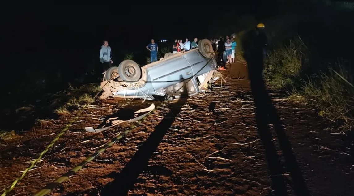 Um grave acidente envolvendo três carros em Jurandá, na região Centro-Oeste do Paraná, deixou duas pessoas mortas e quatro gravemente feridas, na noite deste sábado (24).
