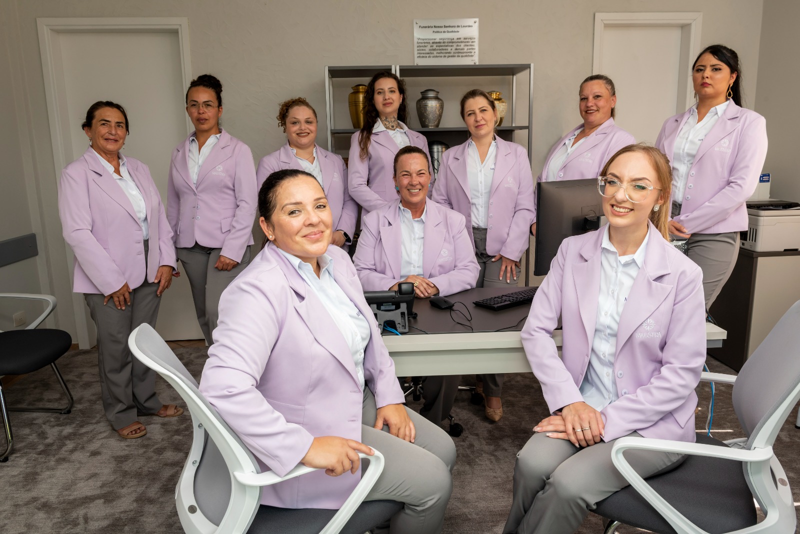 Um grupo de mulheres, inicialmente com nove integrantes, foi contratado e treinado para todas as etapas que um funeral envolve. “Ao longo dos anos, no contato com inúmeras famílias, percebemos esse desejo. E não apenas sobre o manuseio do corpo, num momento de intimidade muito vulnerável. O embelezamento também é importante, denota respeito e traz conforto em meio à tristeza da despedida”, diz Maria de Lourdes Mildemberg, idealizadora da Maestra Serviço Funerário Feminino.
