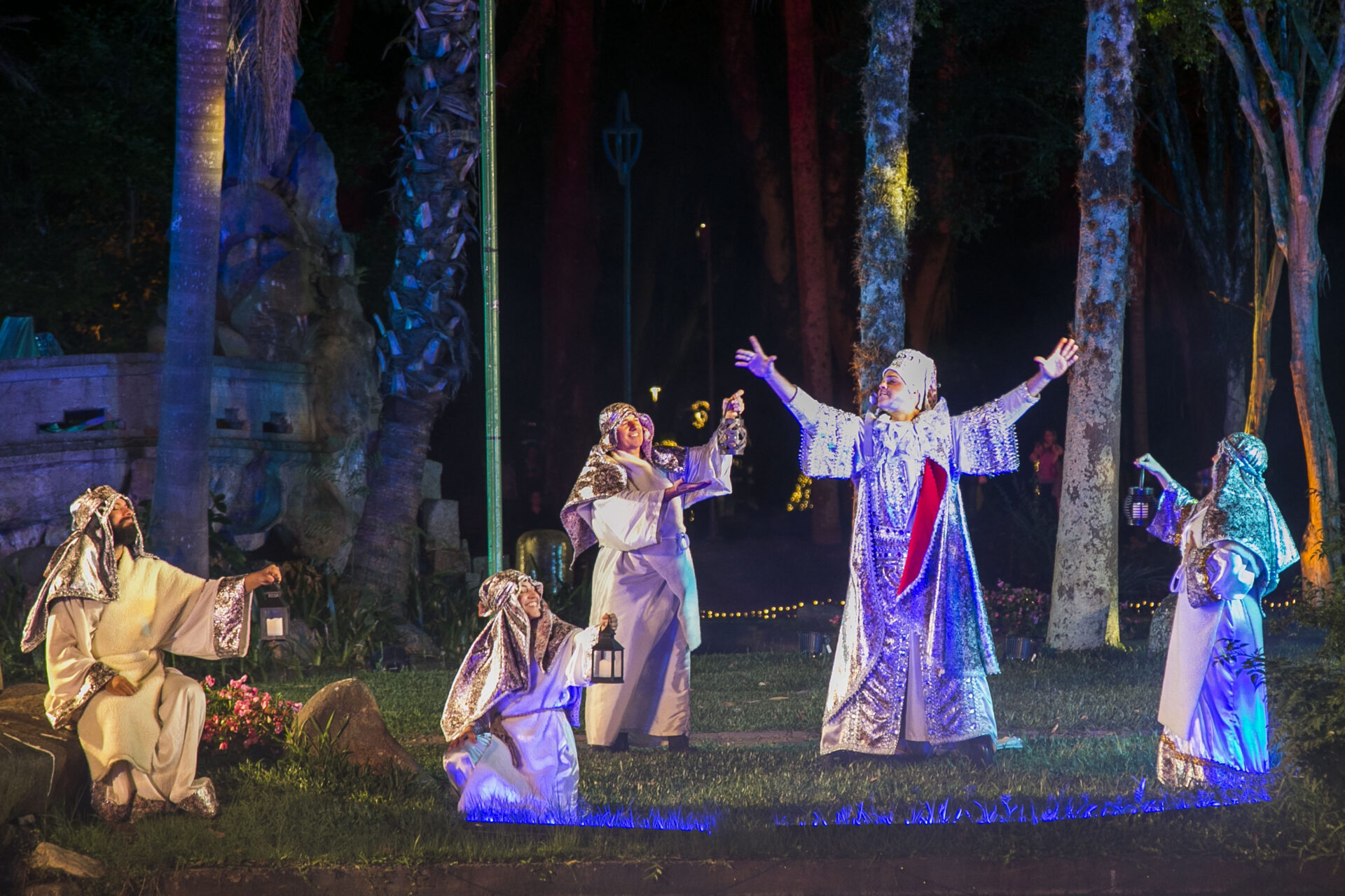 Às 19h30, na Ilha dos Poetas do Passeio Público, tem início o espetáculo que encantará o público com a dramatização poética e musical da chegada dos Reis Magos à manjedoura. Melchior, Balthazar e Gaspar protagonizam a emocionante jornada guiados pela Estrela Guia até a manjedoura de Cristo.
