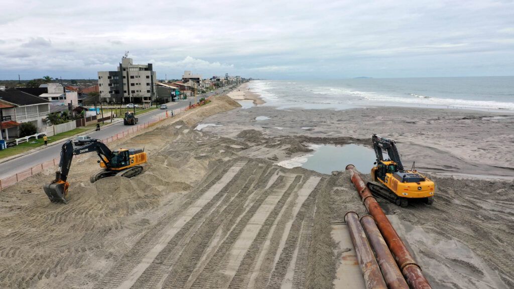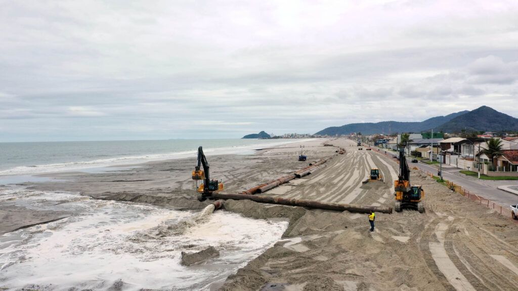 A engorda da faixa de areia em Matinhos, no Litoral do Paraná, já passa de 80% de conclusão. O trabalho foi finalizado na praia de Caiobá e no Balneário Riviera até o Pico de Matinhos. A draga Galileo Galilei, de origem belga, utilizada para retirar areia do fundo do mar, foi deslocada na última segunda-feira (3) para o balneário Riviera para finalizar a engorda no trecho que vai até o balneário Flórida. Faltam apenas 2,3 quilômetros.