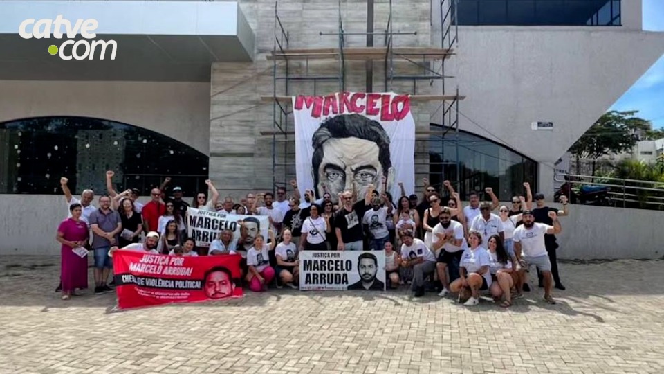 Familiares e amigos de Marcelo Arruda realizaram neste domingo (16), em Foz do Iguaçu, no Oeste do Paraná, um protesto contra a decisão judicial que concedeu a prisão domiciliar a Jorge Guaranho, que foi condenado na última semana a 20 anos de prisão pelo assassinato do tesoureiro do PT (Partido dos Trabalhadores).