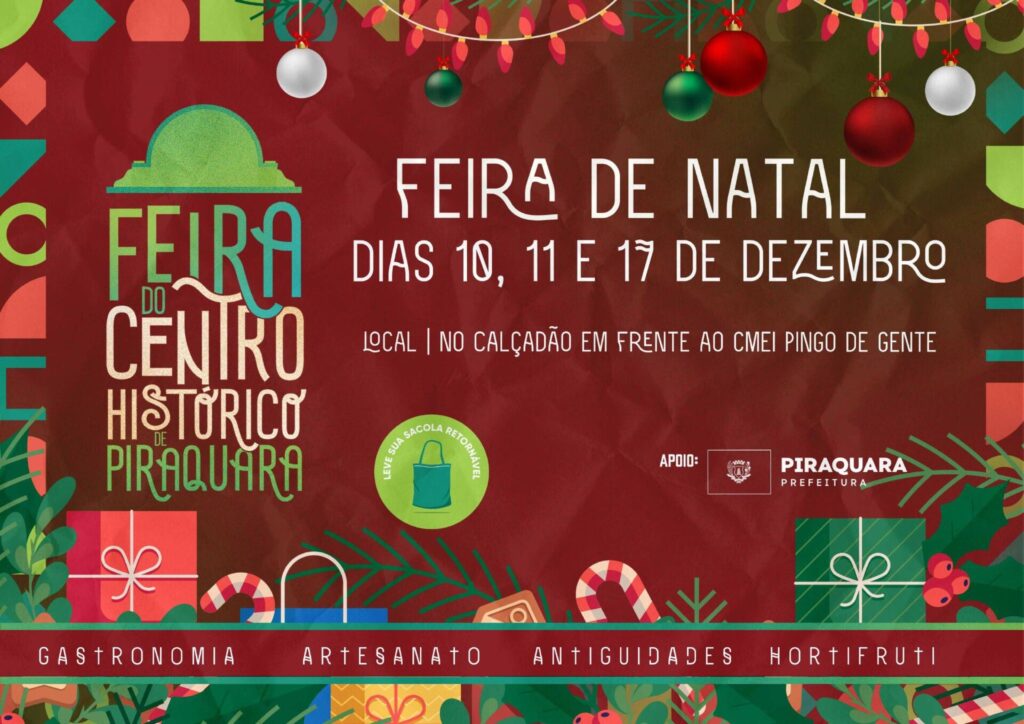 A tradicional Feira do Centro Histórico de Piraquara será realizada em três datas nesse mês. Marcada para os dias 10, 11 e 17 de dezembro, o evento faz parte da programação de natal de Piraquara.