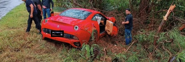 Segundo a Polícia Rodoviária Estadual (PRE), o motorista perdeu o controle a Ferrari, com placas de Joinville (SC), e bateu contra várias árvores.