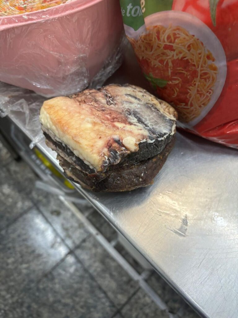 Durante a operação, a Vigilância Sanitária interditou a padaria de um supermercado da cidade após constatar irregularidades graves durante a inspeção. No local, os fiscais encontraram produtos vencidos, alimentos com fezes de roedores, presença de mofo e condições precárias de higiene nas áreas de produção e armazenamento, caracterizando risco iminente de contaminação e colocando em perigo a saúde dos consumidores.