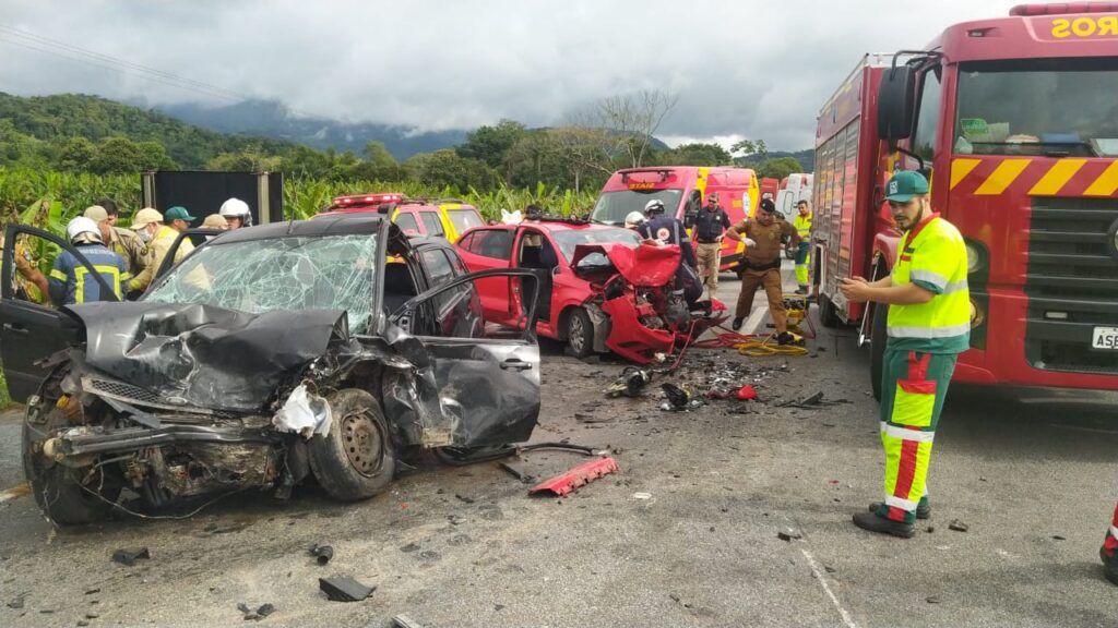 O acidente aconteceu depois que um um dos carros, um Fiat Fiesta que fazia o sentido Curitiba, invadiu a pista contrária e bateu de frente contra outro veículo, um Fiat Argo de cor vermelha.