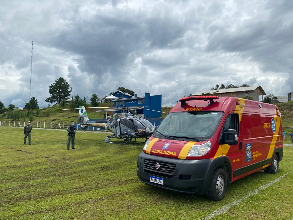 Conforme o BPMOA, o homem sofreu uma lesão torácica e precisou ser socorrido de helicóptero até o hospital.