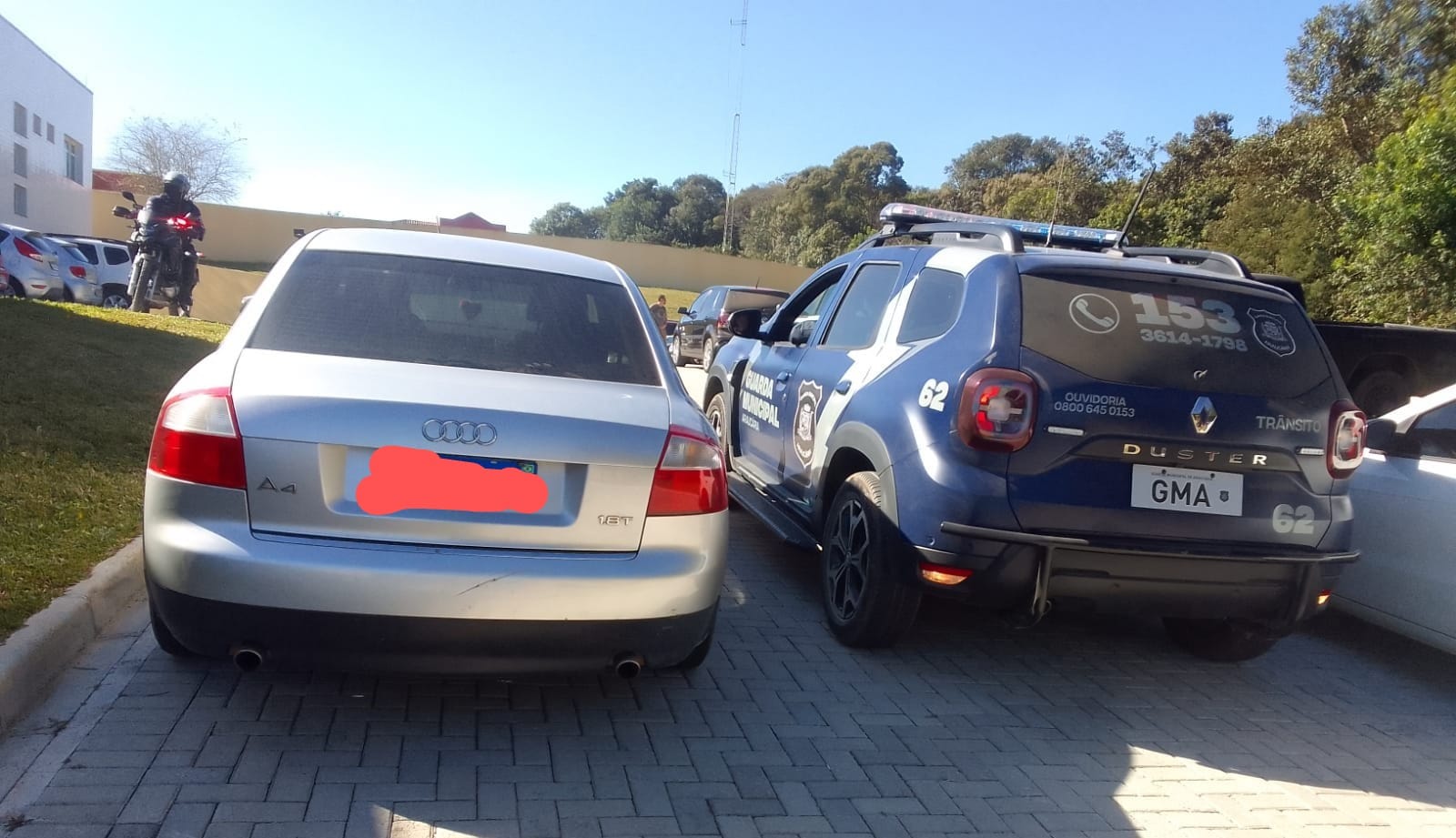 Conforme a GMA, o furto do Audi aconteceu próximo a um hipermercado na Rodovia do Xisto(BR 476). O pelotão de motocicletas da guarda viu o veículo parado em um posto de combustíveis, na Av. das Araucárias, e realizou a abordagem.