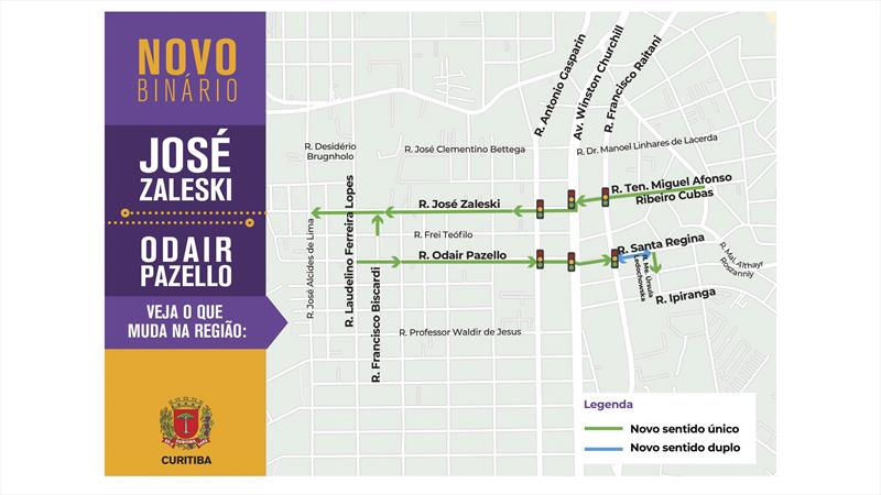 A partir das 11h desta terça-feira (24/10), o bairro Capão Raso, em Curitiba, recebe o novo binário José Zaleski/Odair Pazello. Para que a alteração possa ser feita, cinco ruas da região terão sentido de circulação modificado.