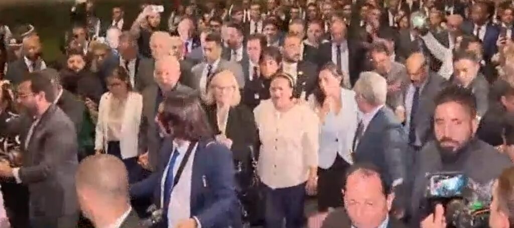 O presidente Luiz Inácio Lula da Silva (PT) desceu a rampa do Palácio do Planalto, na noite desta segunda-feira, 9, ao lado de governadores, ministros do Supremo Tribunal Federal (STF) e parlamentares, atravessou a Praça dos Três Poderes e caminhou até a Corte. O ato simbólico em defesa da democracia ocorreu após a invasão do Planalto, do Congresso e da sede do STF por bolsonaristas radicais, que depredaram as instalações dos prédios públicos neste domingo, 8. Mais cedo, os chefes dos Poderes já haviam publicado uma carta conjunta na qual classificaram a violência praticada em Brasília como de “atos de terrorismo”.