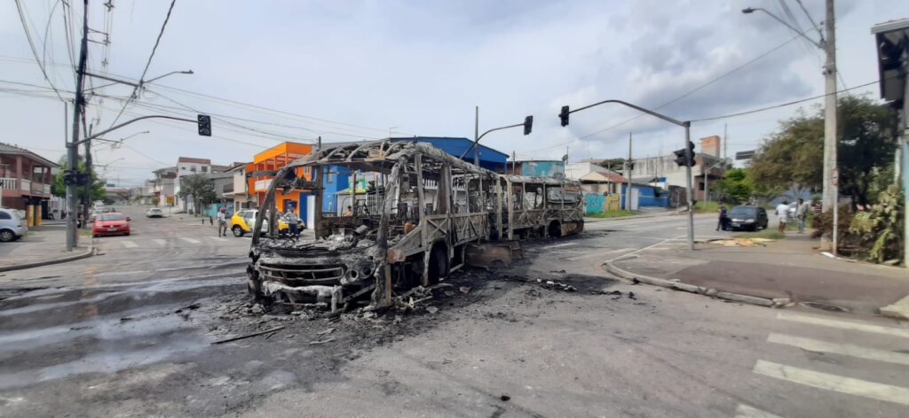 Manifestantes incendiaram um ônibus de linha no início da tarde desta segunda-feira (21) na região da Vila Torres, no bairro Prado Velho, em Curitiba. O trânsito está bloqueado no cruzamento da Rua Chile com a Manoel Martins Abreu.