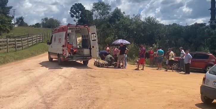 Um motociclista foi socorrido com lesões graves após um acidente com um carro na zona rural de Mandirituba, na Região Metropolitana de Curitiba, na tarde deste domingo (10).