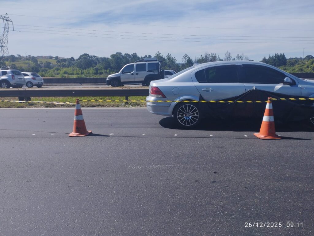Segundo a Polícia Rodoviária Federal, que atendeu a ocorrência por volta das 6h15, o sinistro foi caracterizado, a princípio, como uma colisão traseira. O acidente envolveu um automóvel GM/Vectra Sedan Elegance, de cor prata, com placas de Guabiruba (SC), e uma motocicleta Honda/CB 300R, de cor preta, com placas de Carlópolis (PR).