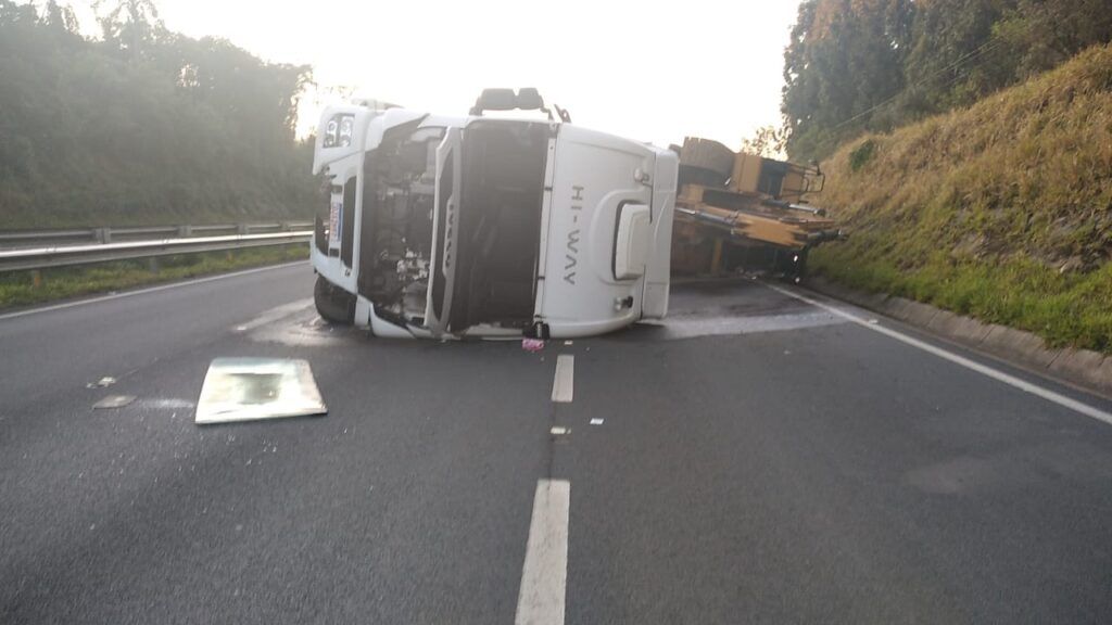 De acordo com a PRF, o caminhão vinha na pista sentido Curitiba, quando o motorista perdeu o controle, cruzou o canteiro central e tombou no sentido contrário.