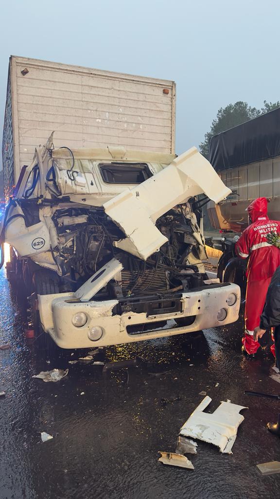 Conforme a PRF, um caminhão seguia sentido interior do Paraná e, ao passar por um alargamento da rodovia, reduziu a velocidade. Com isso, o motorista de um Ford/Cargo acabou não conseguindo frear, acertando em cheio a traseira do outro veículo.