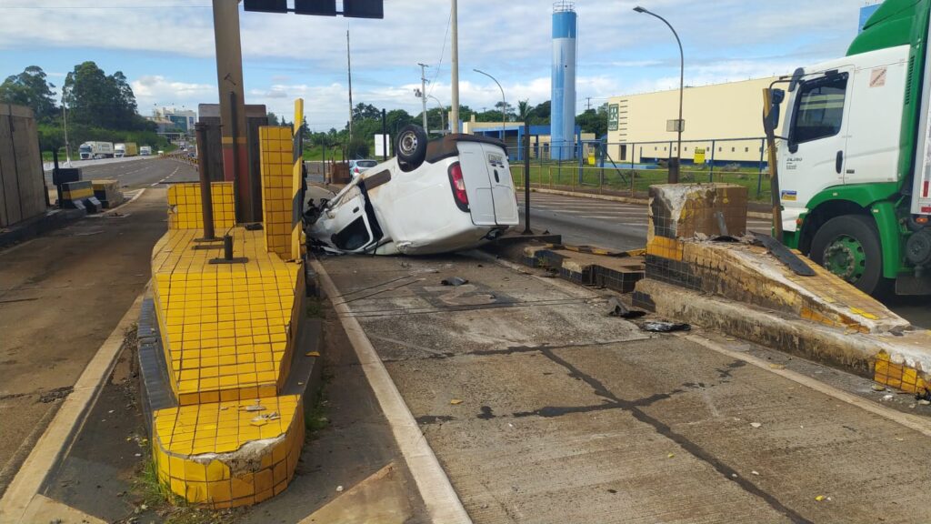 Um motorista ficou em estado grave após o perder o controle do carro na antiga praça de pedágio em Arapongas, no Norte do Paraná, na tarde desta terça-feira (25).