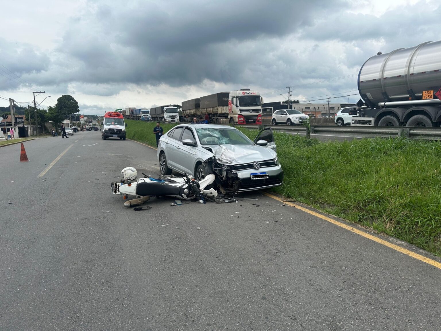 Ainda segundo a PRF, devido ao acidente o motorista sofreu lesões leves e recebeu socorro médico ainda no local. O trânsito apresenta lentidão na região.