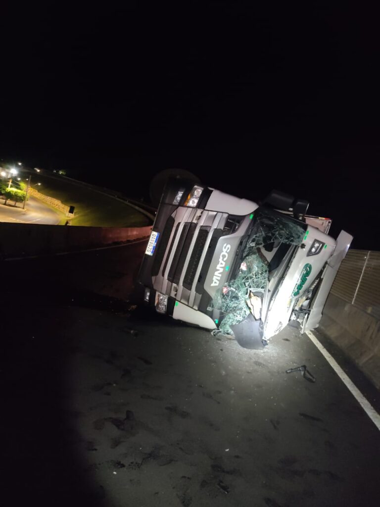 Conforme a Polícia Rodoviária Federal (PRF), o acidente aconteceu no perímetro urbano da rodovia. Um caminhão Scania G450, com placas de Campo Grande-MS, que seguia sentido Mauá da Serra/Marilândia do Sul, tombou em um trecho de curva.