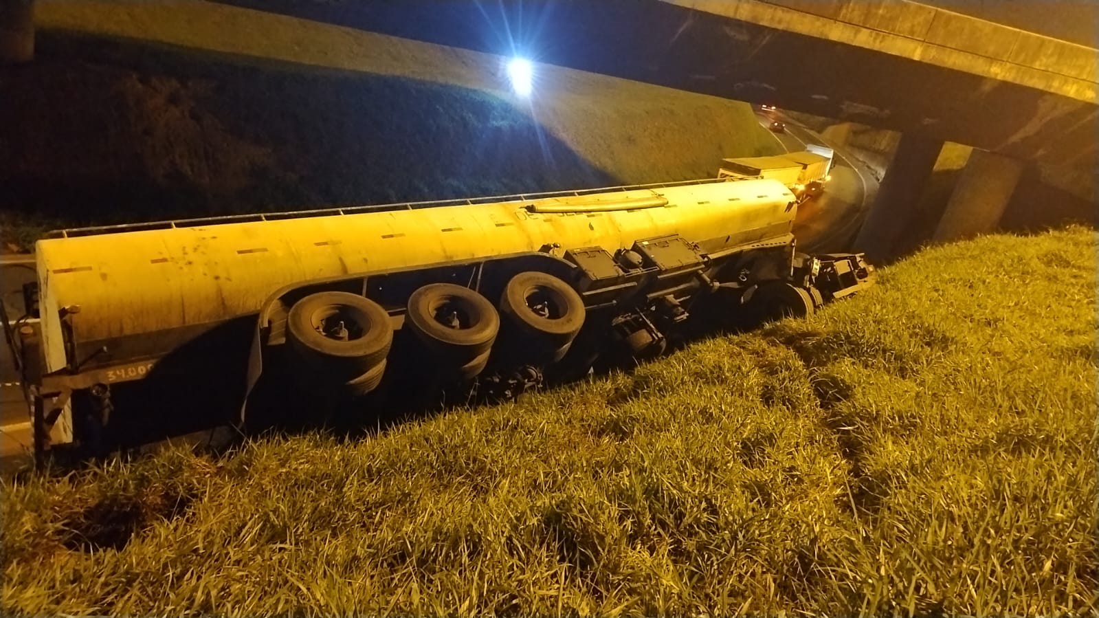 O caminhão quase caiu sobre a pista de acesso à Av. Souza Naves (BR-373). Devido ao tombamento, houve interdição da faixa direita da via de acesso à Souza Naves até o veículo ser estabilizado. O caminhão e o motorista envolvido são de Ponta Grossa.
