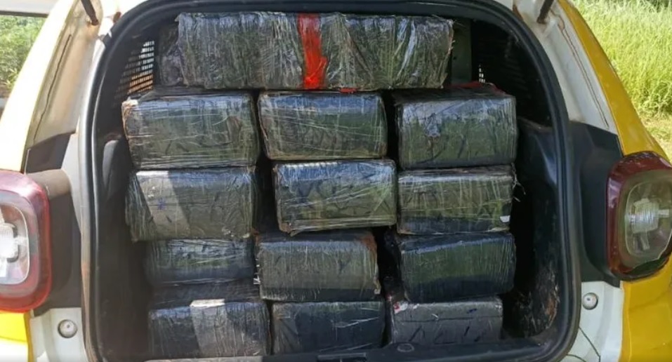 Primeiramente, os policiais começaram a suspeitar da mulher ao acharem pacotes de drogas jogados no mato próximo á estrada. Em buscas na região, localizaram o veículo em uma estrada rural e encontraram mais maconha dentro.