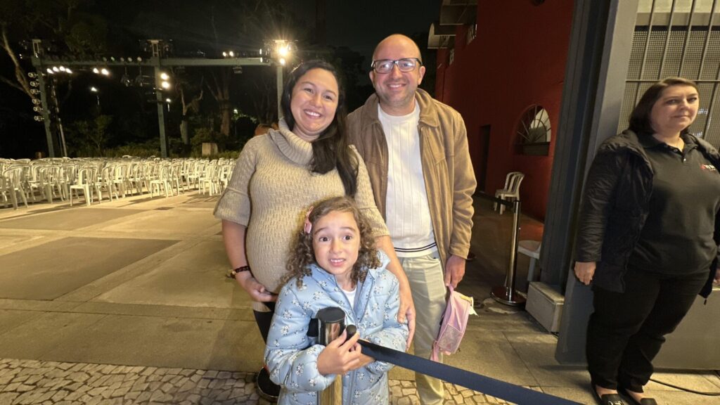 E para quem estava acostumada com o calor de Fortaleza, Catarina Duarte, que mora em Curitiba há 3 anos, não deixou o frio abalar. Acompanhada do marido e da filha Alexa, todos garantiram a primeira fileira para assistir a apresentação. “É a minha época preferida do ano porque esse Natal daqui não tem igual”, disse Catarina. E para a pequena Alexa, a nota do espetáculo supera a nota dez. “Pea mim foi miiil”, com muita ênfase nos ‘is’.