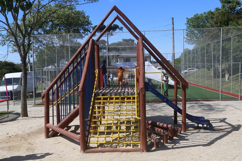 Foi instalado um brinquedo multifuncional em madeira, com design moderno e seguro. Complementando as melhorias, foi feito um novo calçamento, garantindo melhor mobilidade e conforto aos frequentadores.