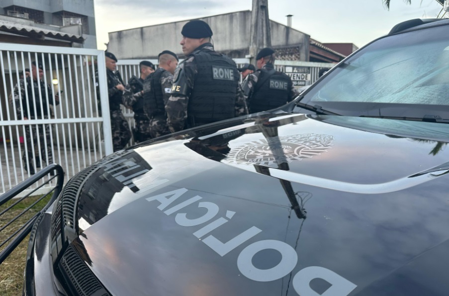 A operação mobiliza um efetivo de 150 policiais, com o apoio de cães de faro da PCPR e da PMPR, além do suporte aéreo de helicópteros para monitoramento e ações táticas.