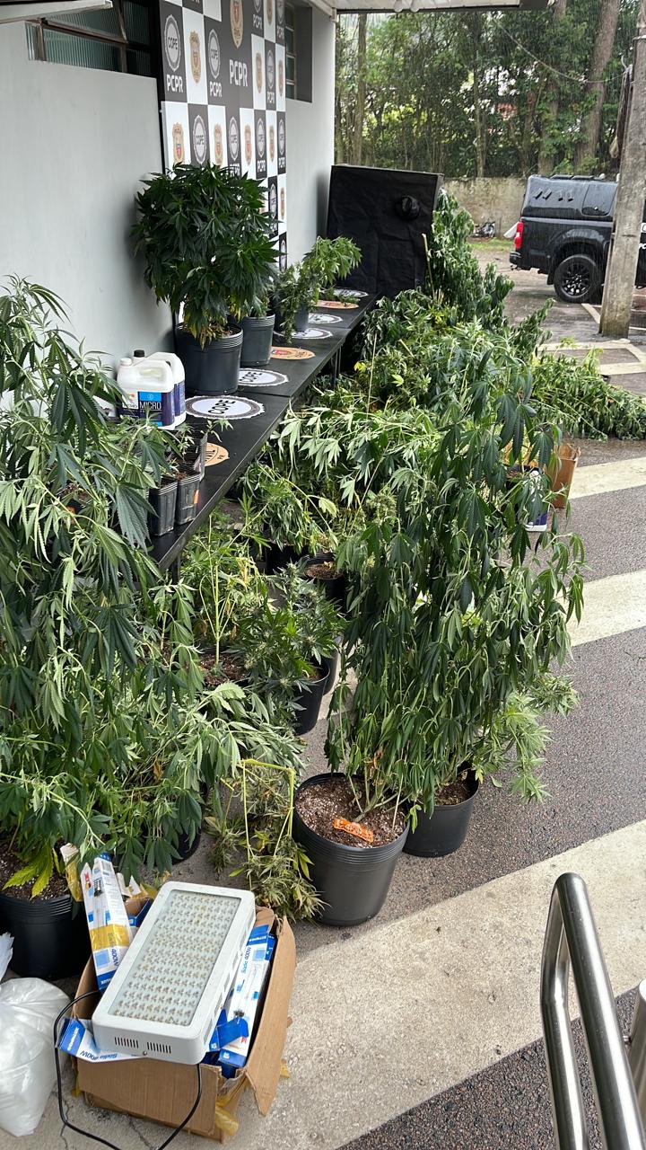 “Em um dos locais tinha uma estufa de maconha com dezenas de pés de maconha. Apreendemos também bastante drogas sintéticas”, conta o delegado da PCPR Rodrigo Brown.
